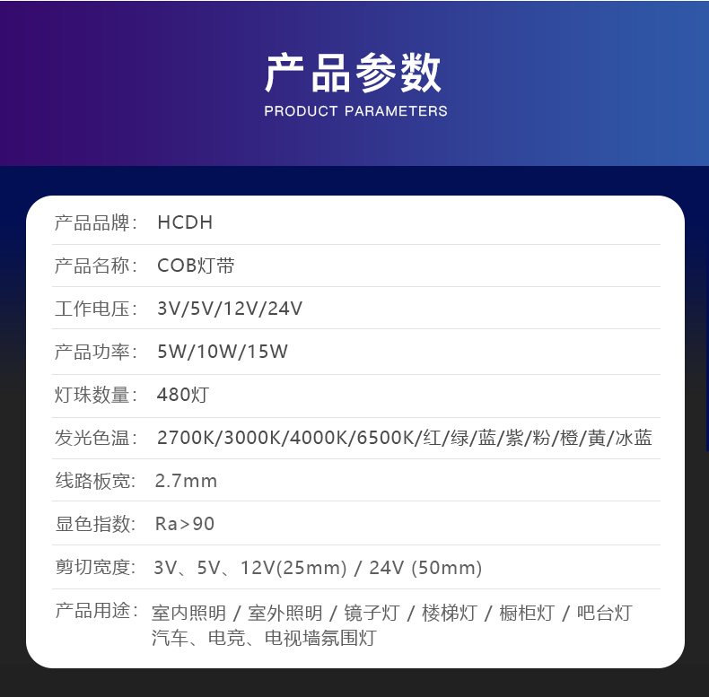 超窄2.7mm 480灯彩光COB灯带 彩色汽车家用装饰氛围灯带