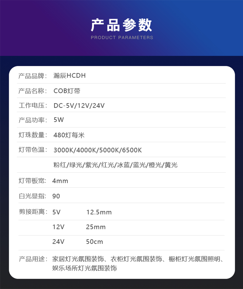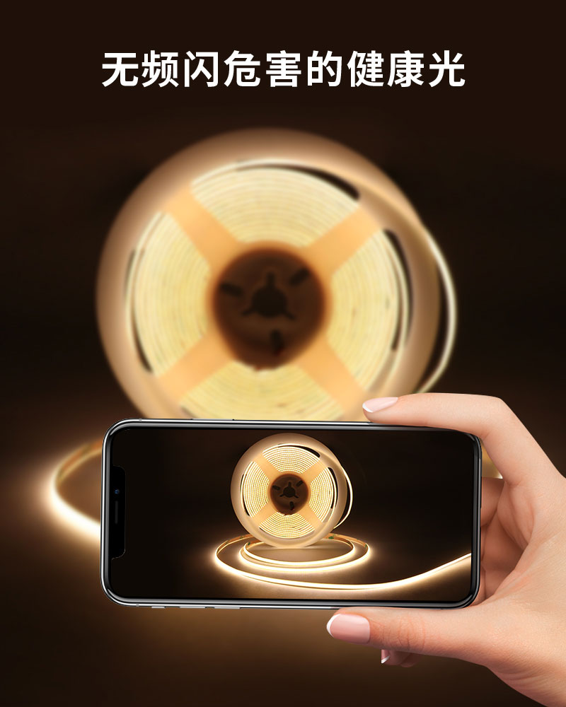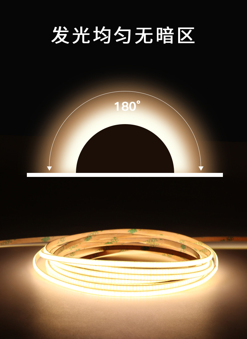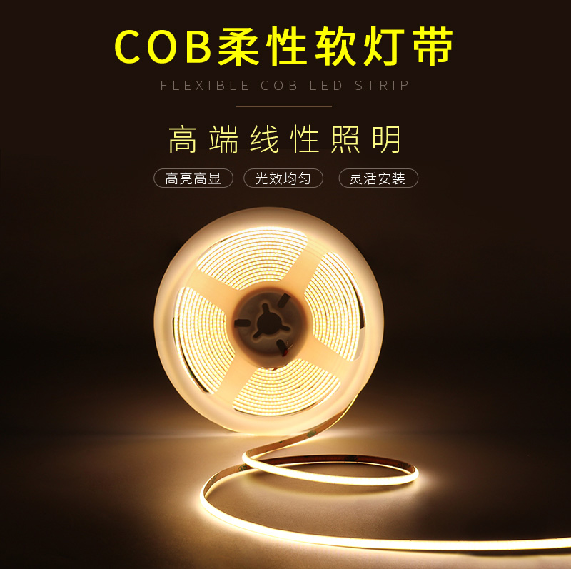 > 后一个:4mm宽cob灯带 卷对卷连板无焊接 高亮480灯 橱柜装饰带背胶软灯条led
