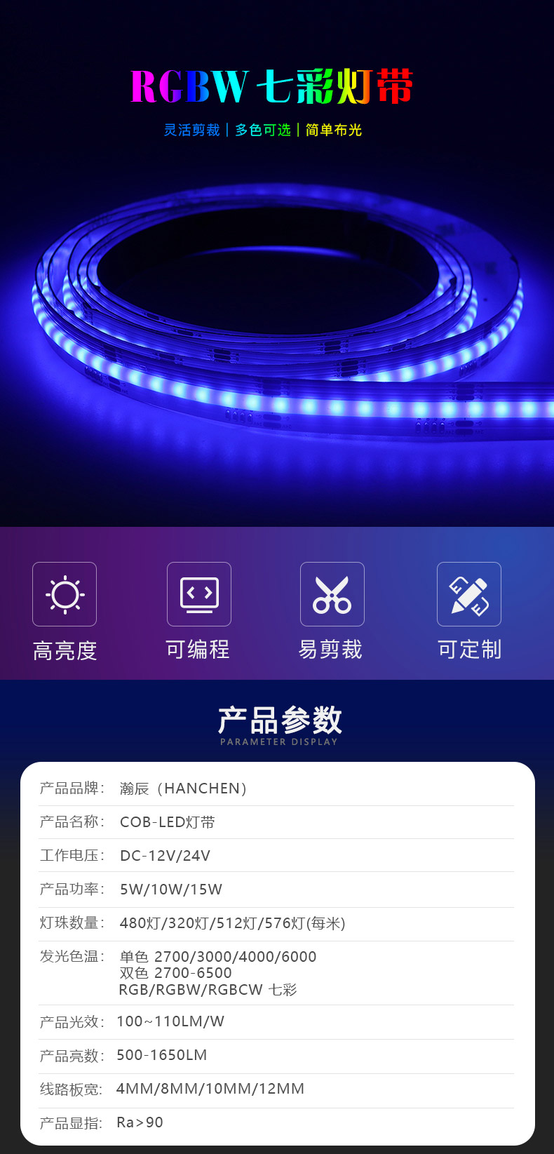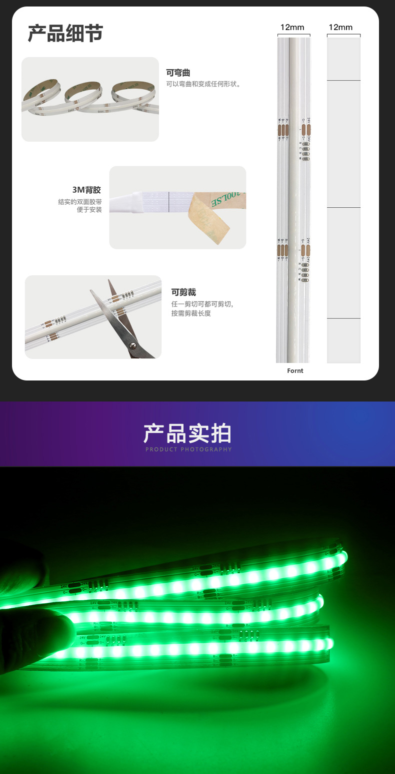 12mm RGBW四色COB灯带 智能调色氛围灯带