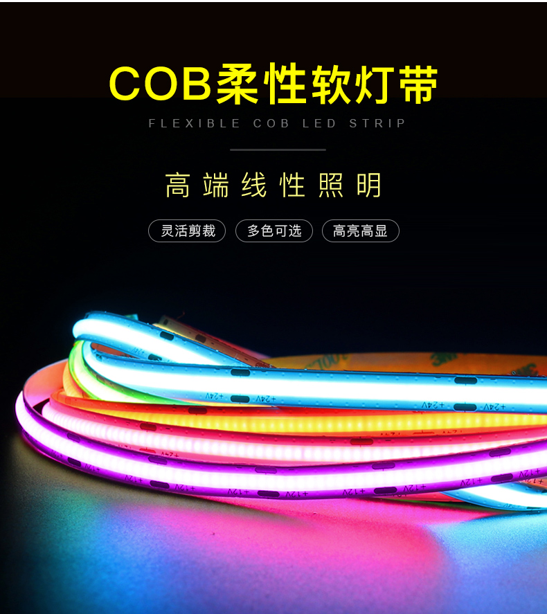 8mm彩光COB灯带低压12V/24V