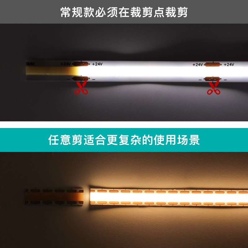 二灯一剪COB灯带 任意剪 无频闪超窄裁剪口 氛围装饰 橱柜展柜 led灯条