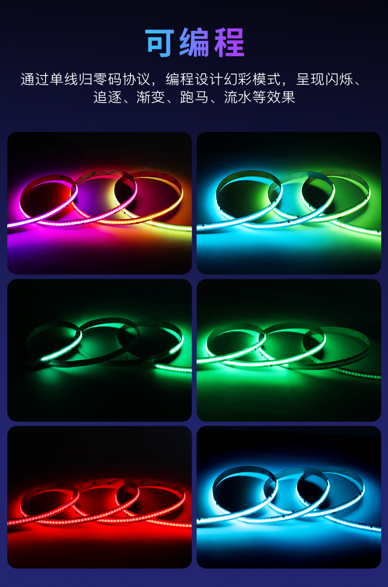 10mm COB幻彩灯带 跑马流水 可编程