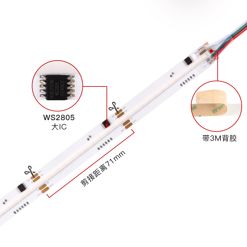 > 后一个:超窄2.7MM宽COB幻彩灯带 单点单控 跑马流水 低压5V 氛围装饰软灯条