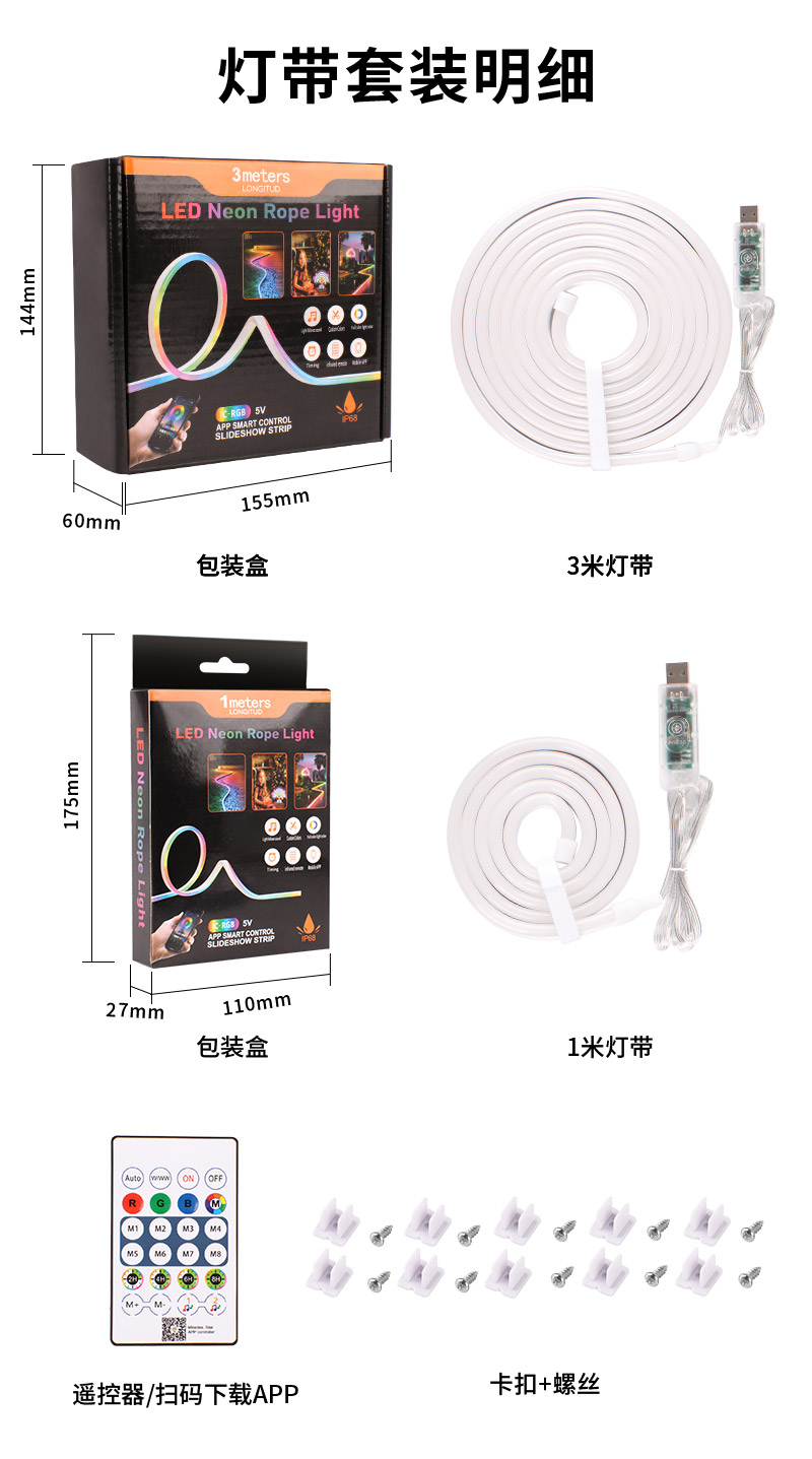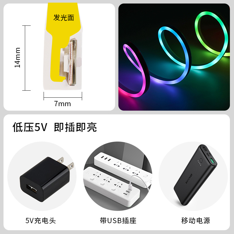 LED幻彩霓虹灯带套装 跑马流水usb 低压5v 防水 广告牌造型柔性灯条