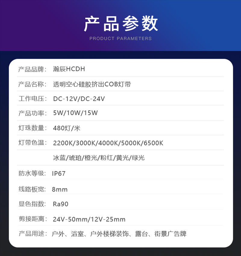 < 前一个:10mm宽COB防水灯带 空心硅胶挤出 IP67防水户外氛围装饰高显指led条