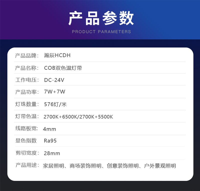 4mm 双色温COB灯带 95显指 智能控制