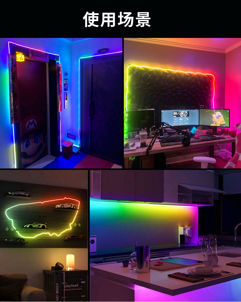 0410 硅胶幻彩灯带 低压5V 侧发光 跑马流水追光 超窄led灯条