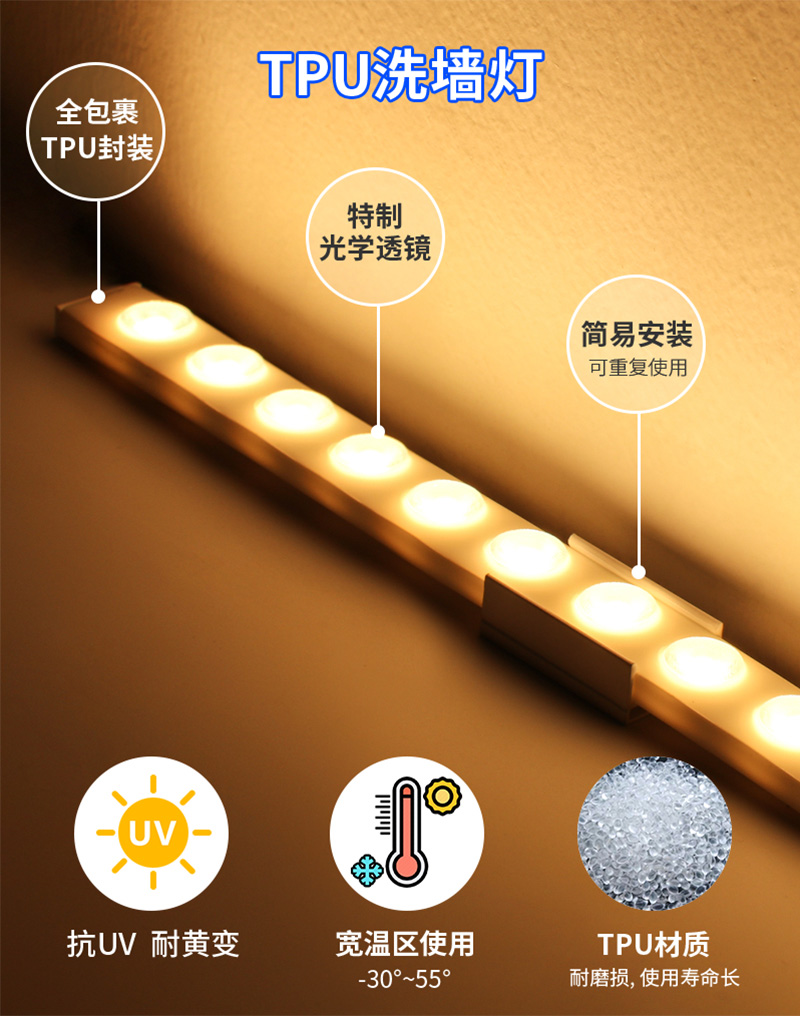 2010柔性透镜洗墙灯 TPU封装防水 dmx512全彩外墙rgb洗墙照明led