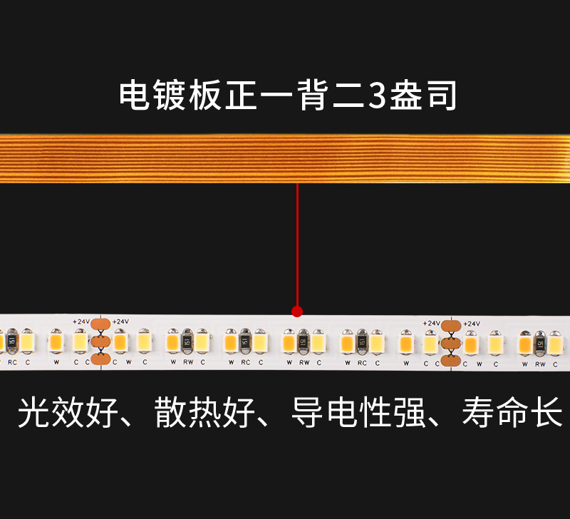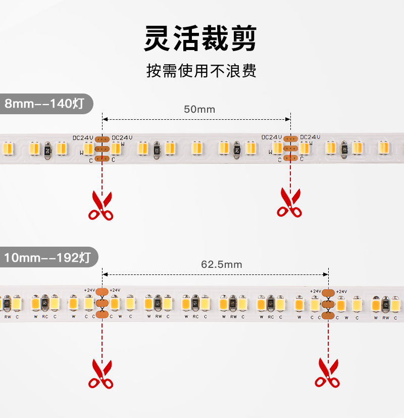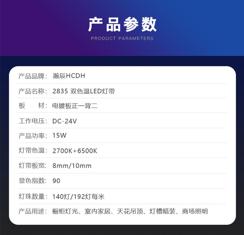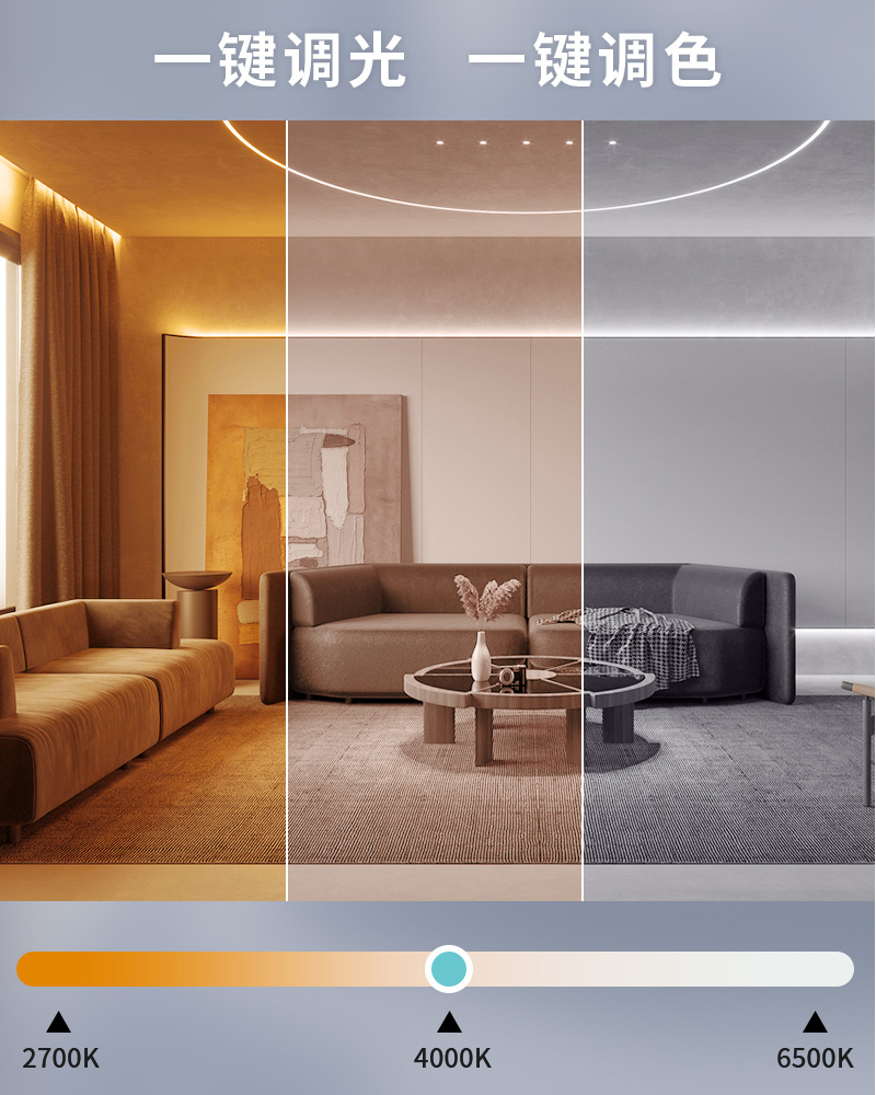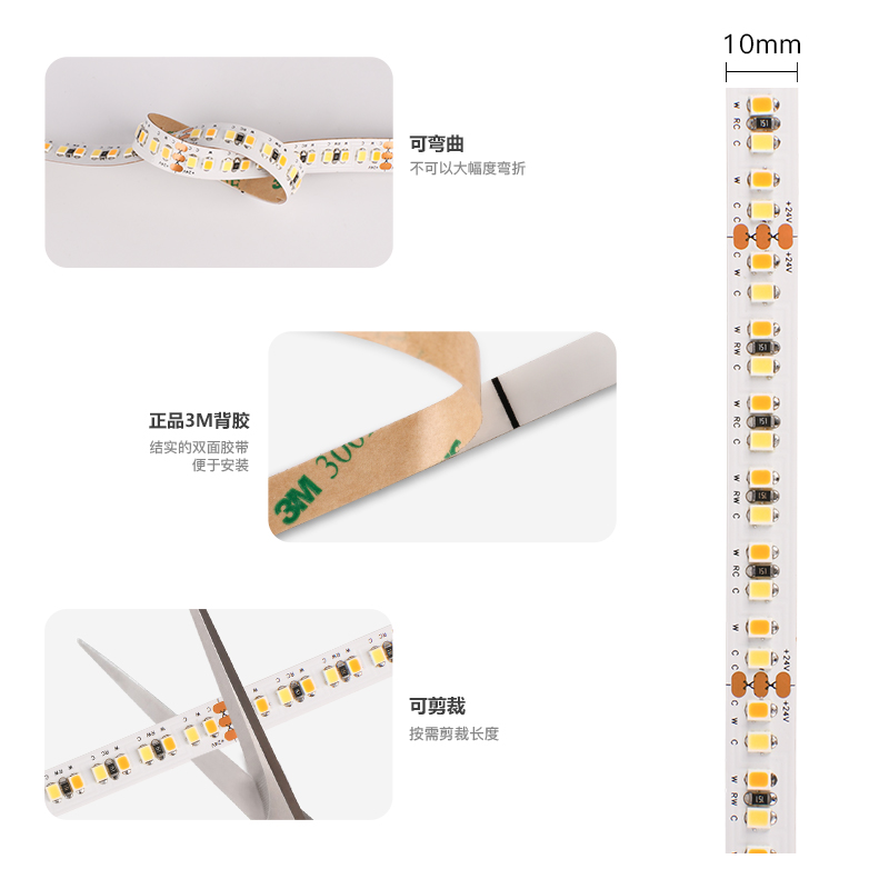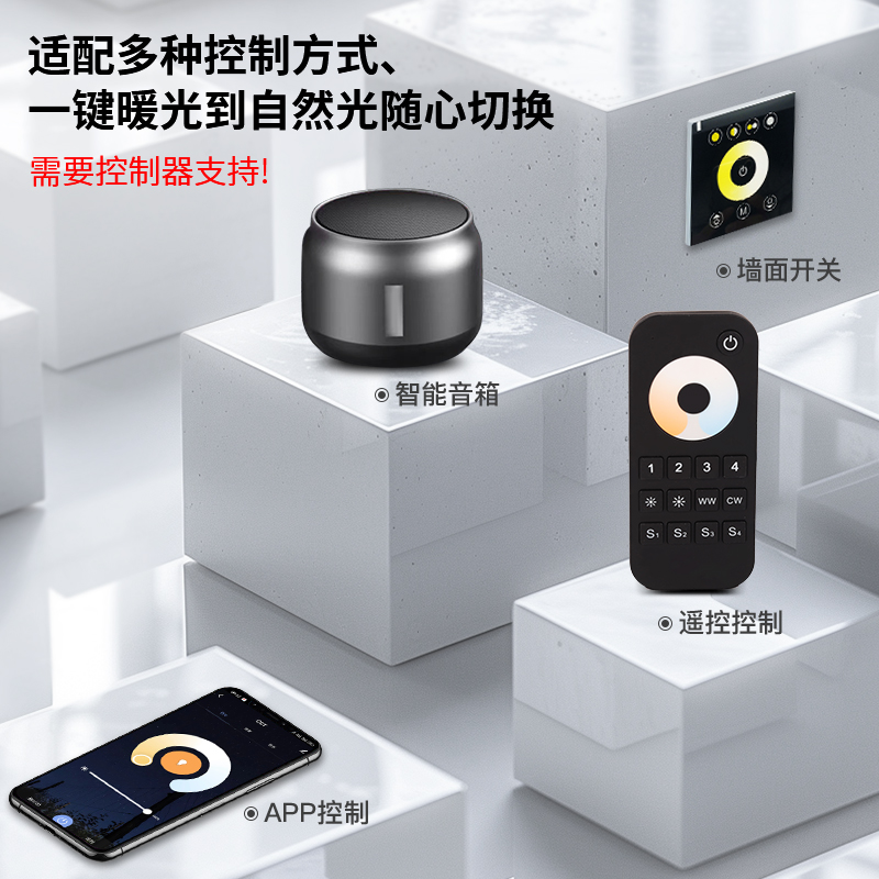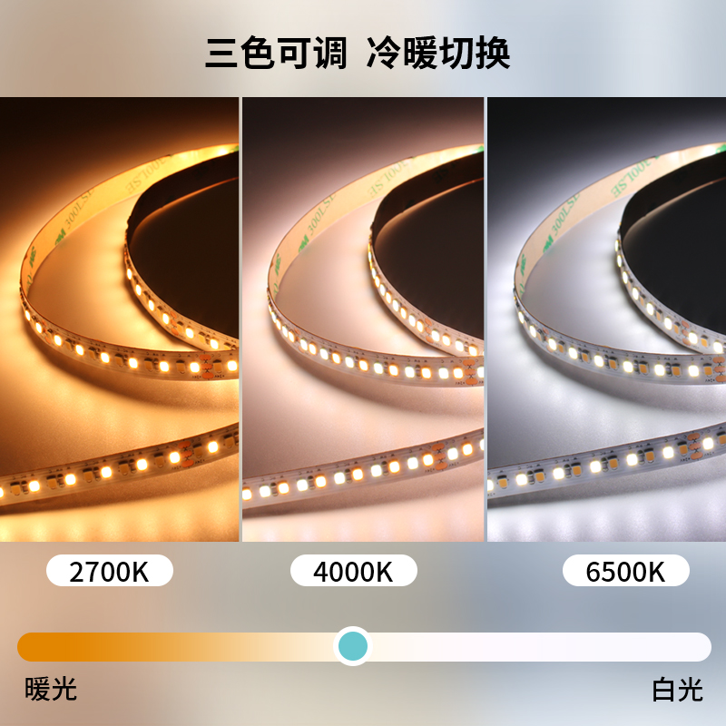 2835双色温灯带 智能调光2700+6500K三色可调 室内照明双面板led条