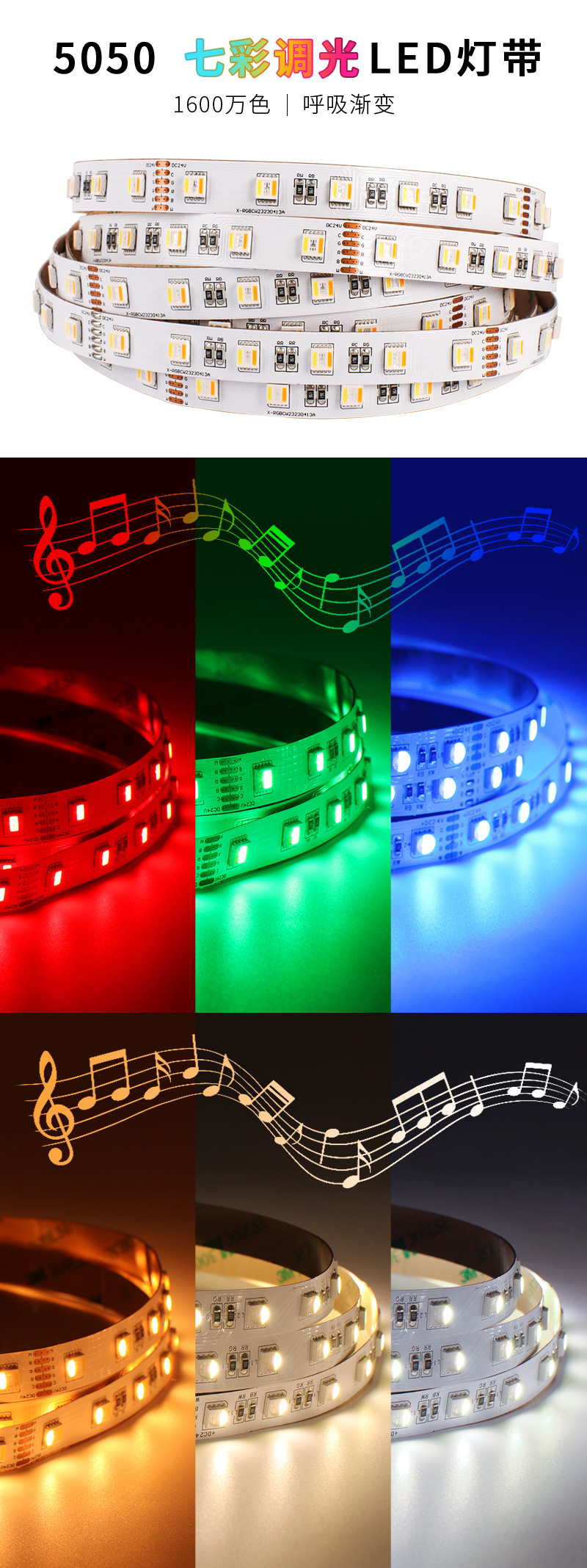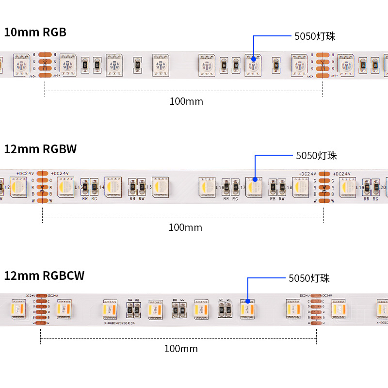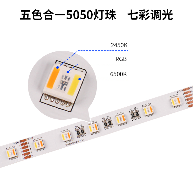 5050rgb七彩调光氛围灯带 五色合一低压24V 工程家装双面板led灯条