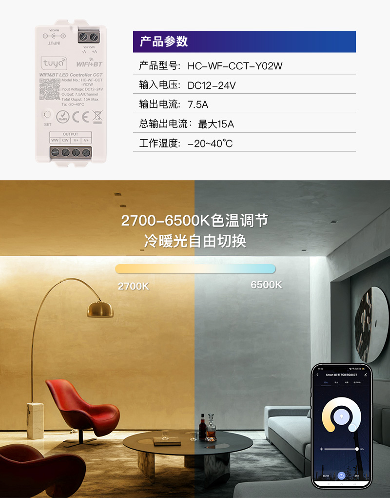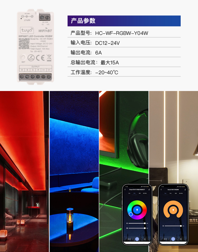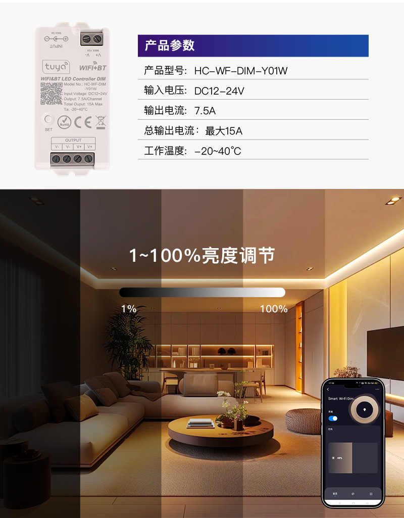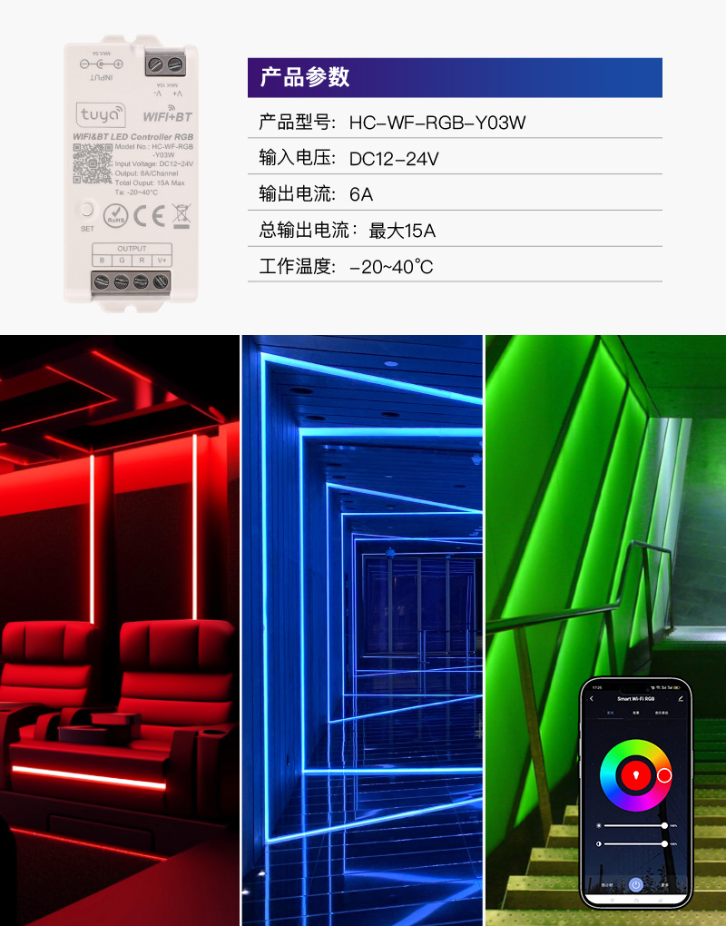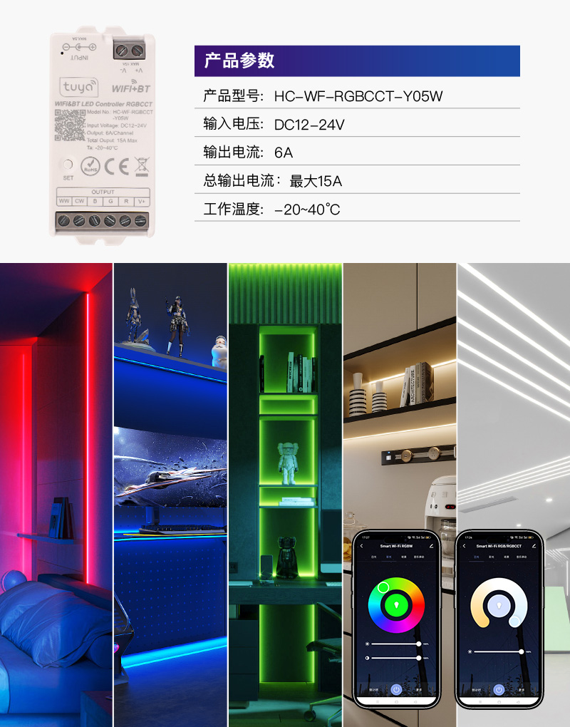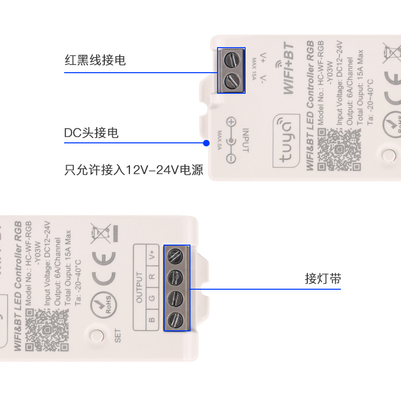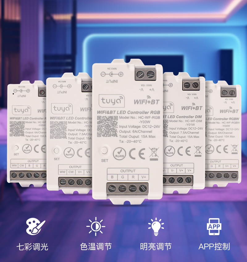 LED灯带控制器 单双色RGB调光七彩 蓝牙无线智能APP涂鸦wifi语音控制