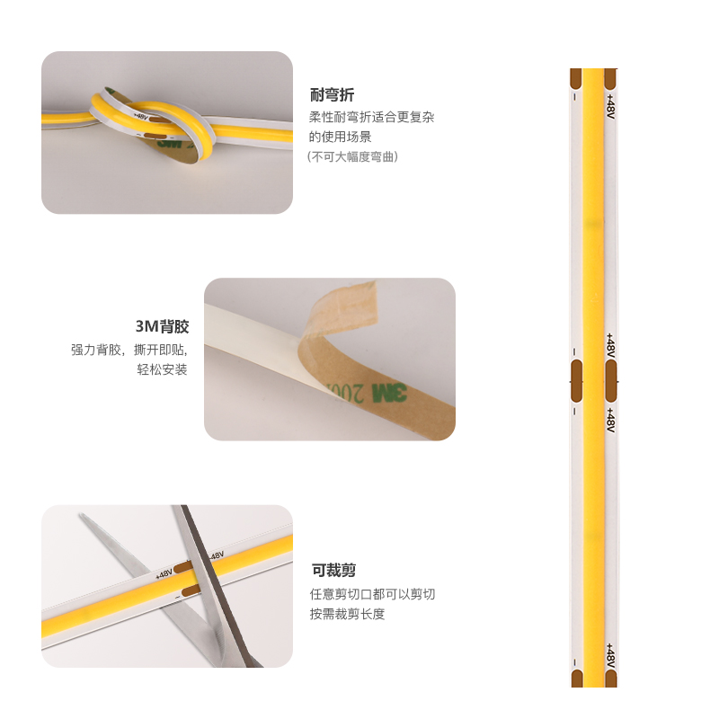 恒压48V COB软灯带 高亮20米长距离无压降 双面厚板 自粘无频闪led条