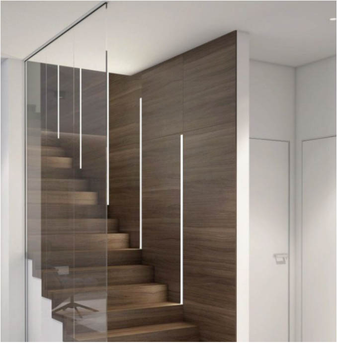 正常灯光不能低于视线水平线的高度,不然会有刺眼的感觉,但是大多数楼梯灯带都是装在台阶附近或者把手上下,所以装灯带的时候一定要做到见光不见灯,灯带要装在楼梯扶手里侧,不要暴露灯带,这样就会减少灯带直接照射眼睛的情况!淡淡的灯光从缝隙露出来,有种光洗墙的美感!