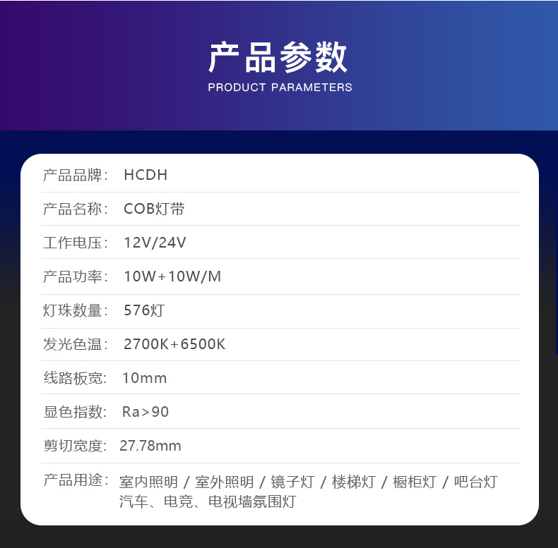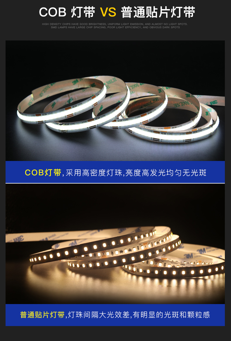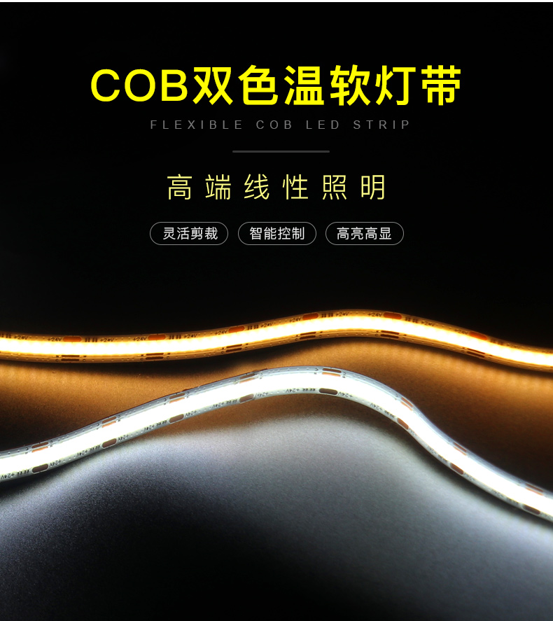 10MM低压双色温led灯条 576灯 智能家居装饰氛围照明COB灯带